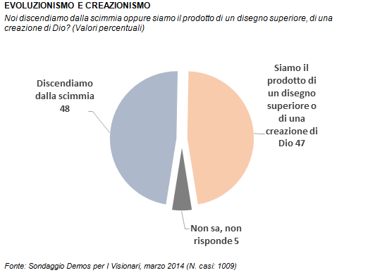 Questo sondaggio è andato in onda nella puntata di Visionari dedicata a Darwin, trasmessa dalla RAI lunedì 7 aprile 2014.