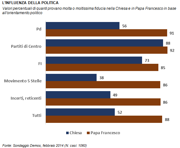 L'indagine è curata da Demos & Pi per la trasmissione "I Visionari". Il sondaggio è stato condotto da Demetra (sistema CATI) nel periodo 5-7 marzo 2014. Il campione nazionale intervistato è tratto dall'elenco di abbonati alla telefonia fissa (N=1009, rifiuti/sostituzioni: 4365) ed è rappresentativo della popolazione italiana con 15 anni e oltre per genere, età, titolo di studio e zona geopolitica di residenza. I dati sono stati ponderati in base al titolo di studio (margine di errore 3.08%). L'indagine è stata diretta, in tutte le sue fasi, da Ilvo Diamanti. Ludovico Gardani e Natascia Porcellato hanno curato la parte metodologica, organizzativa e l'analisi dei dati.