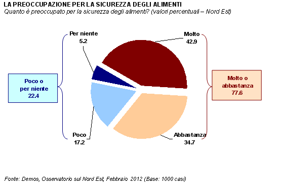 Le motivazioni a supporto delle preoccupazioni di tanti consumatori nordestini certo non mancano. Dalla famigerata «mucca pazza» sino alle mozzarelle tedesche che si coloravano di blu, passando per il latte cinese alla melamina, saremmo portati a credere che le frodi alimentari abbiano origine fuori dai nostri confini. Purtroppo spesso così non è. Nonostante lo scandalo del vino al metanolo nel lontano 1986 abbia impresso una spinta decisiva al potenziamento dei controlli anti frode e della certificazione dei prodotti agroalimentari locali, i tentativi di sofisticazioni continuano anche in Italia e nel Nord Est e non inducono certo ad abbassare la guardia. Ne sono la dimostrazione il 94% dei nordestini che sono molto o moltissimo d'accordo con la proposta per far diventare la sicurezza alimentare una priorità per il futuro.