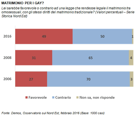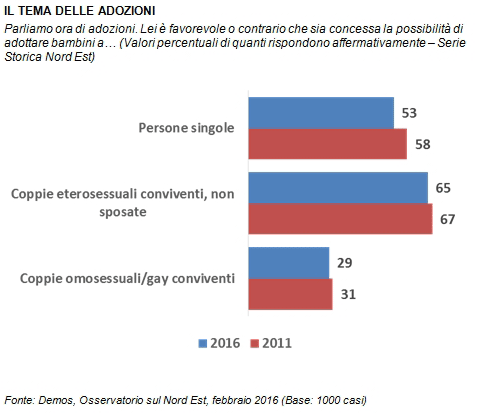 OSSERVATORIO SUL NORD EST - IL NORD EST FAVOREVOLE ALLE UNIONI CIVILI MA NON ALLE ADOZIONI GAY