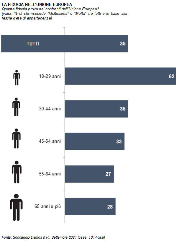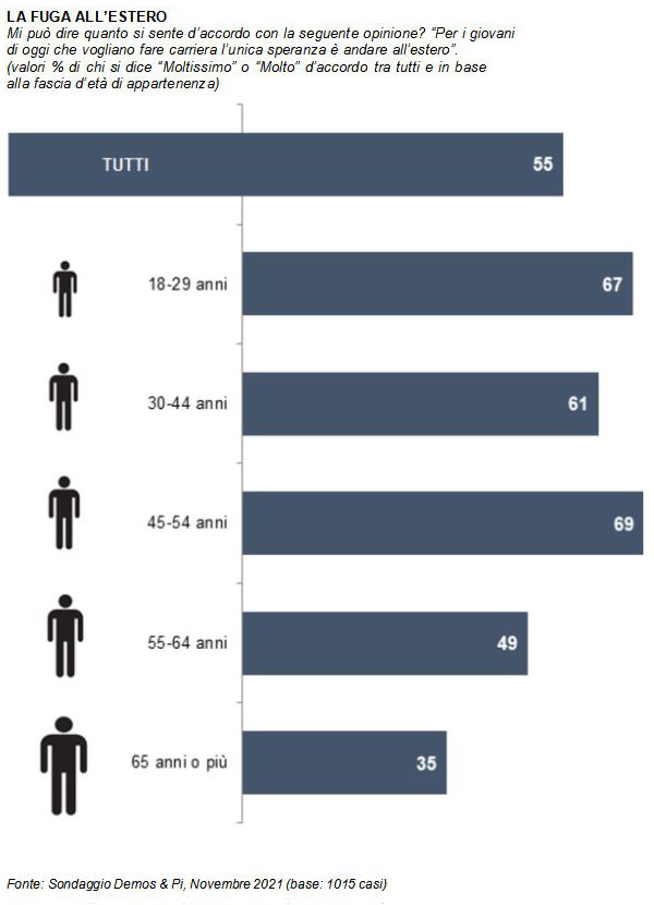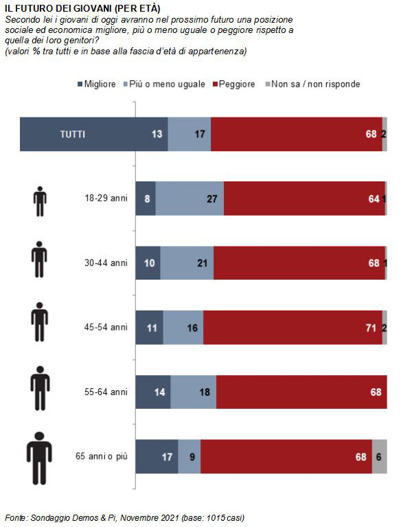 Il sondaggio è stato realizzato da Demos & Pi per La Repubblica. La rilevazione è stata condotta nei giorni 8-10 novembre 2021 da Demetra con metodo mixed mode (Cati - Cami - Cawi). Il campione nazionale intervistato (N=1.015, rifiuti/sostituzioni/inviti: 10.237) è rappresentativo per i caratteri socio-demografici e la distribuzione territoriale della popolazione italiana di età superiore ai 18 anni (margine di errore 3.1%). I dati sono arrotondati all'unità e questo può portare ad avere un totale diverso da 100.